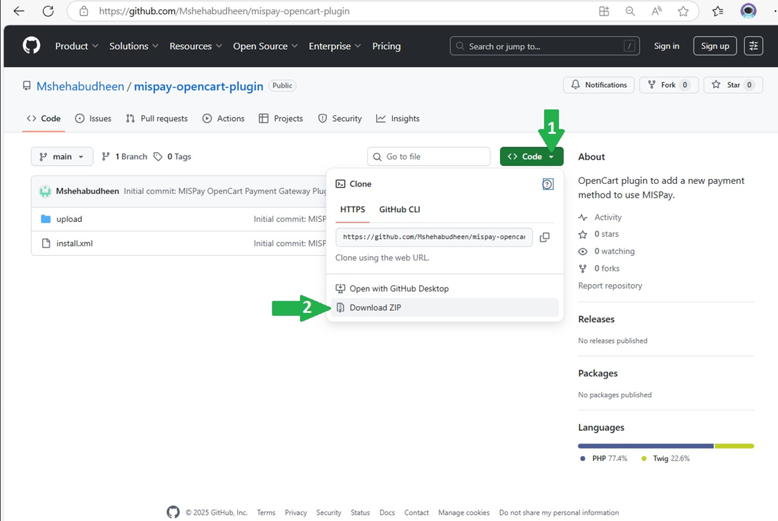 GitHub URL : https://github.com/Mshehabudheen/mispay-opencart-plugin.git