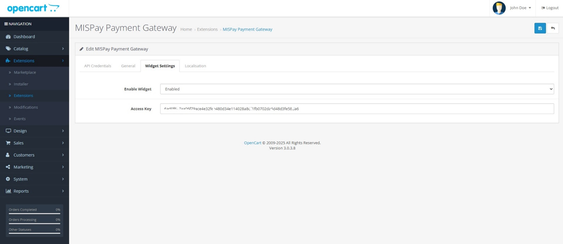 Enable Widget and insert the “Access Key” which you received from MISpay team.