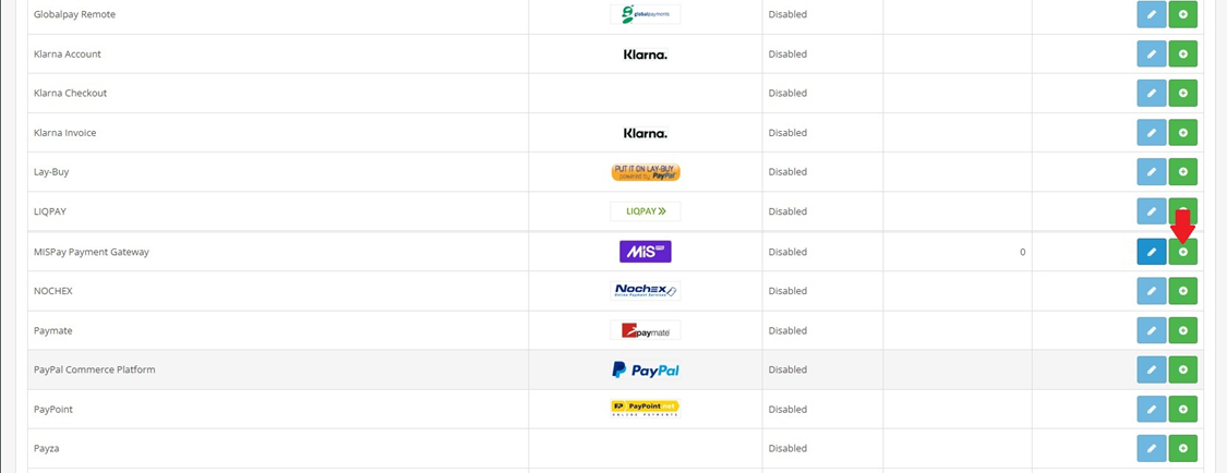 Look for MISPay in the list of available extensions. Once you find it, click on the Install button: