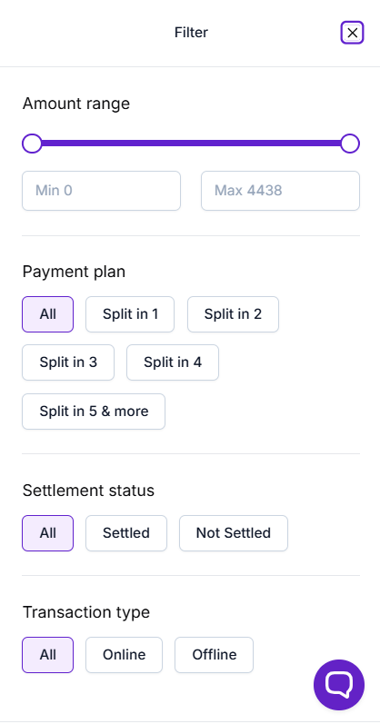 Filter: Opens advanced filtering options to display orders based on your selected criteria.