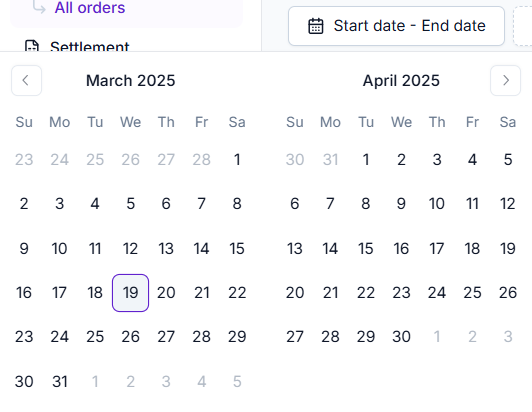 Period Selection: Allows you to filter and list orders in the table based on your desired date range.