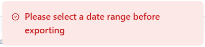 Note: You must select a date range before exporting the sheet; otherwise, you will receive the below message.